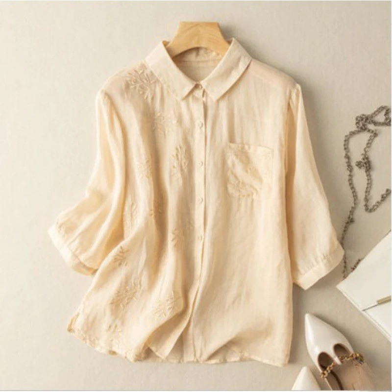Maribel – Floral Shirt Blouse with Half Button Placket